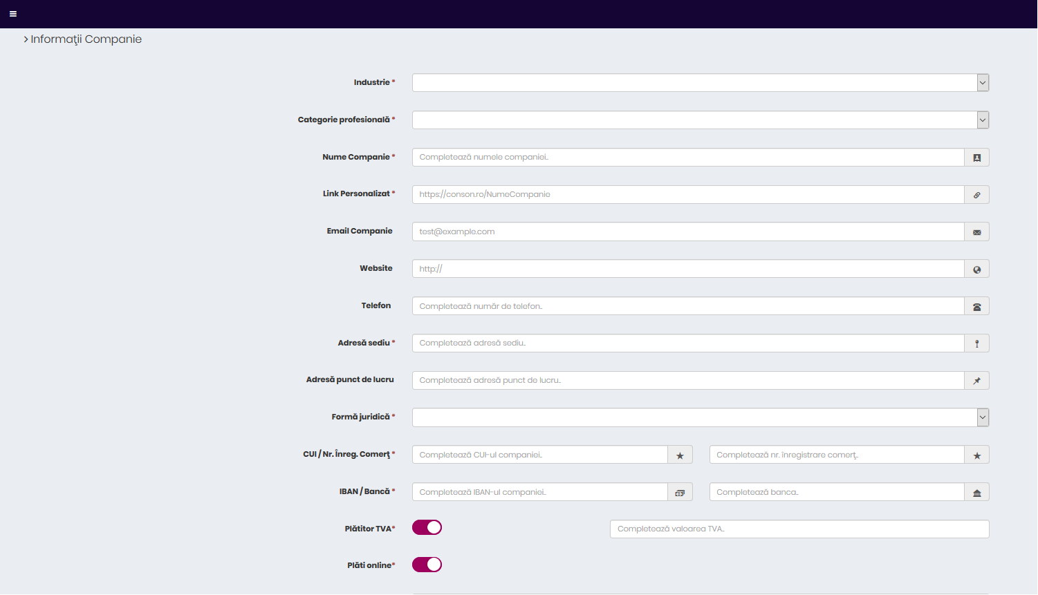 Acest instrument face parte din contul tău Conson şi îţi dă posibilitatea să gestionezi toate aspectele afacerii tale de pe platforma Conson.