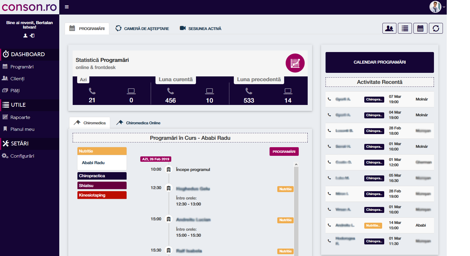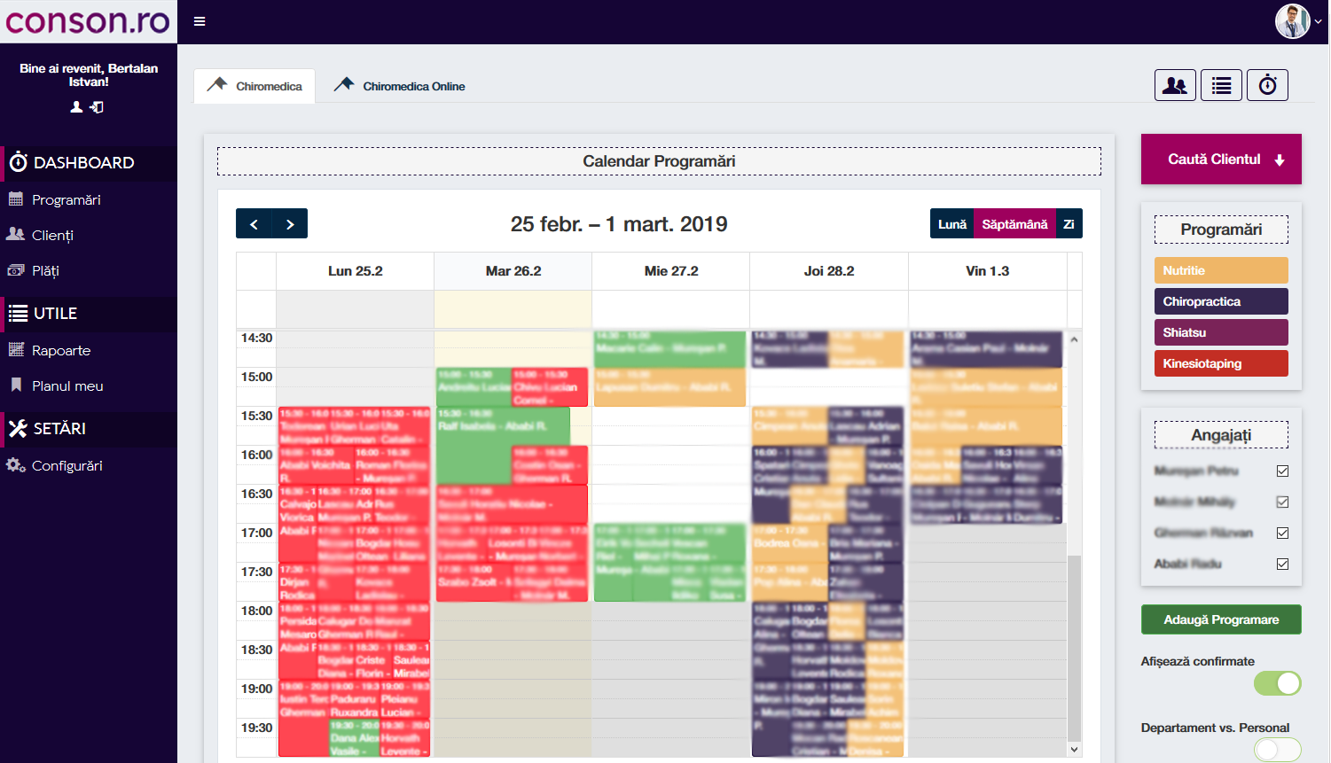 PROGRAMĂRI, CALENDAR, PLĂȚI ON-LINE,